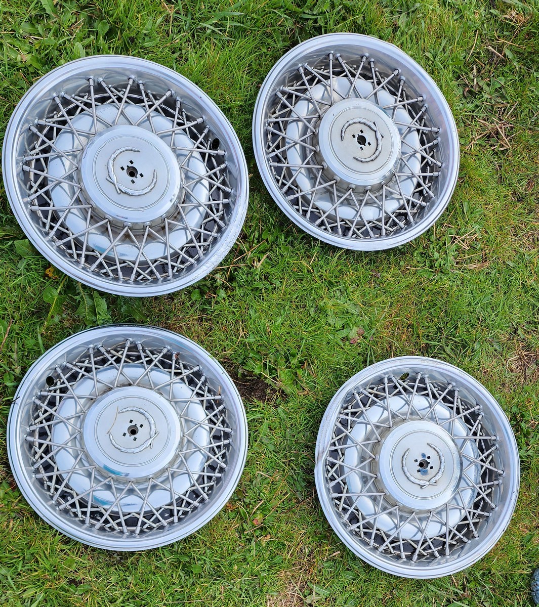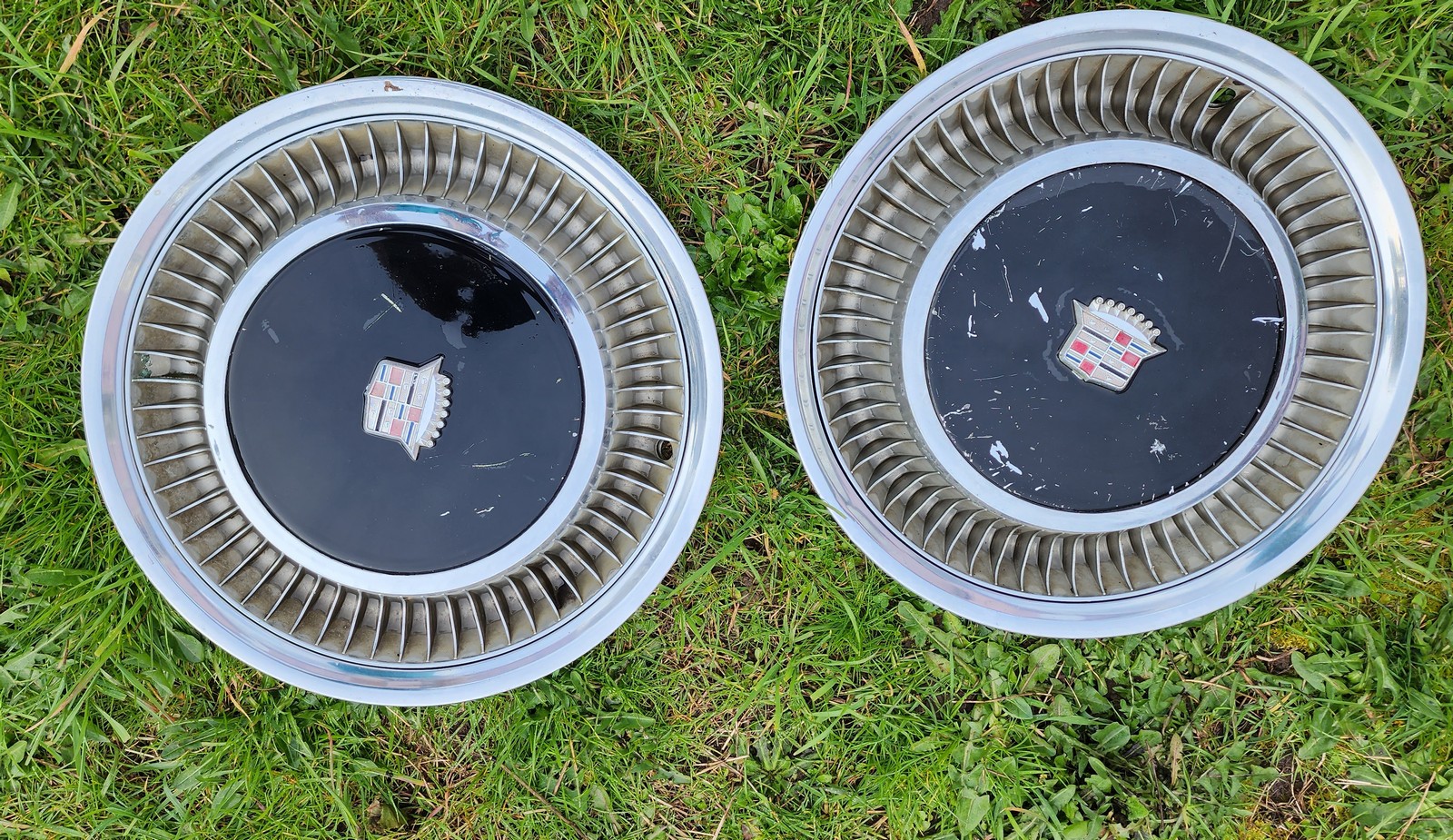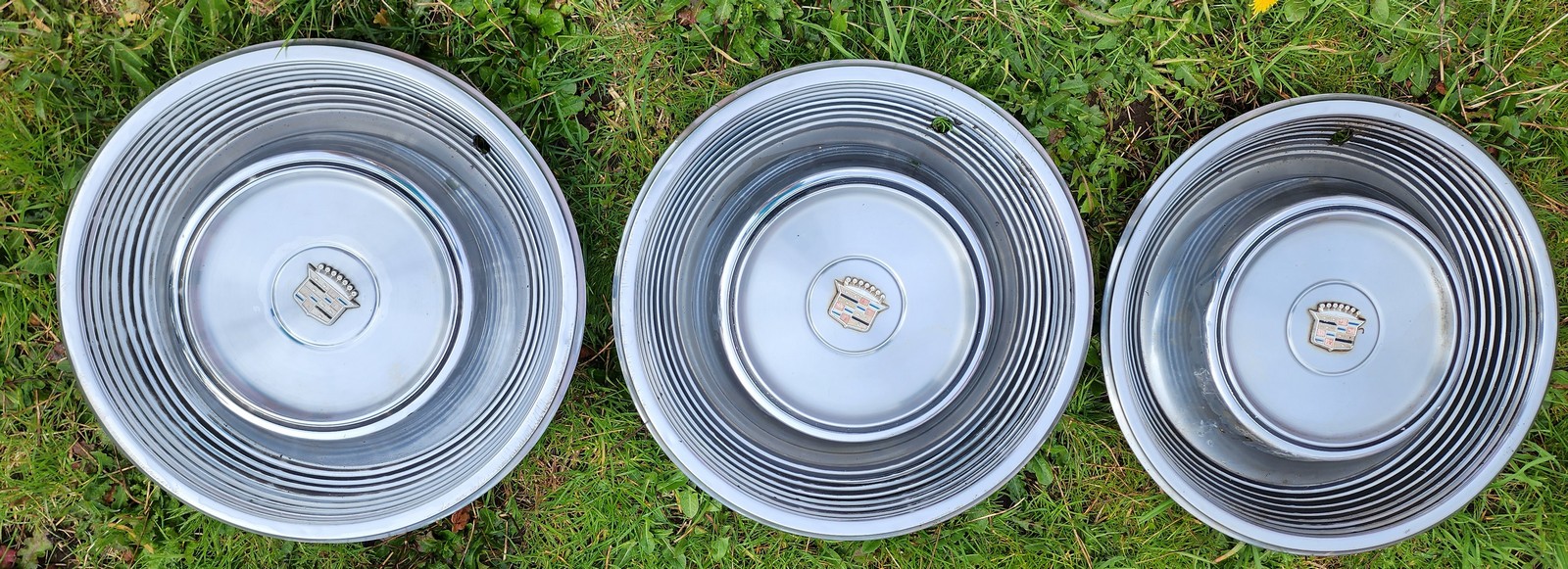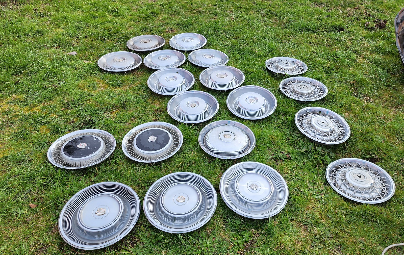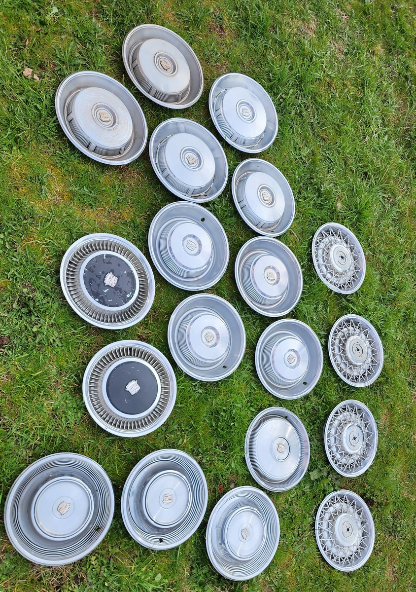 Sets of hubcaps, mostly with a few scratches or dents, but useable.